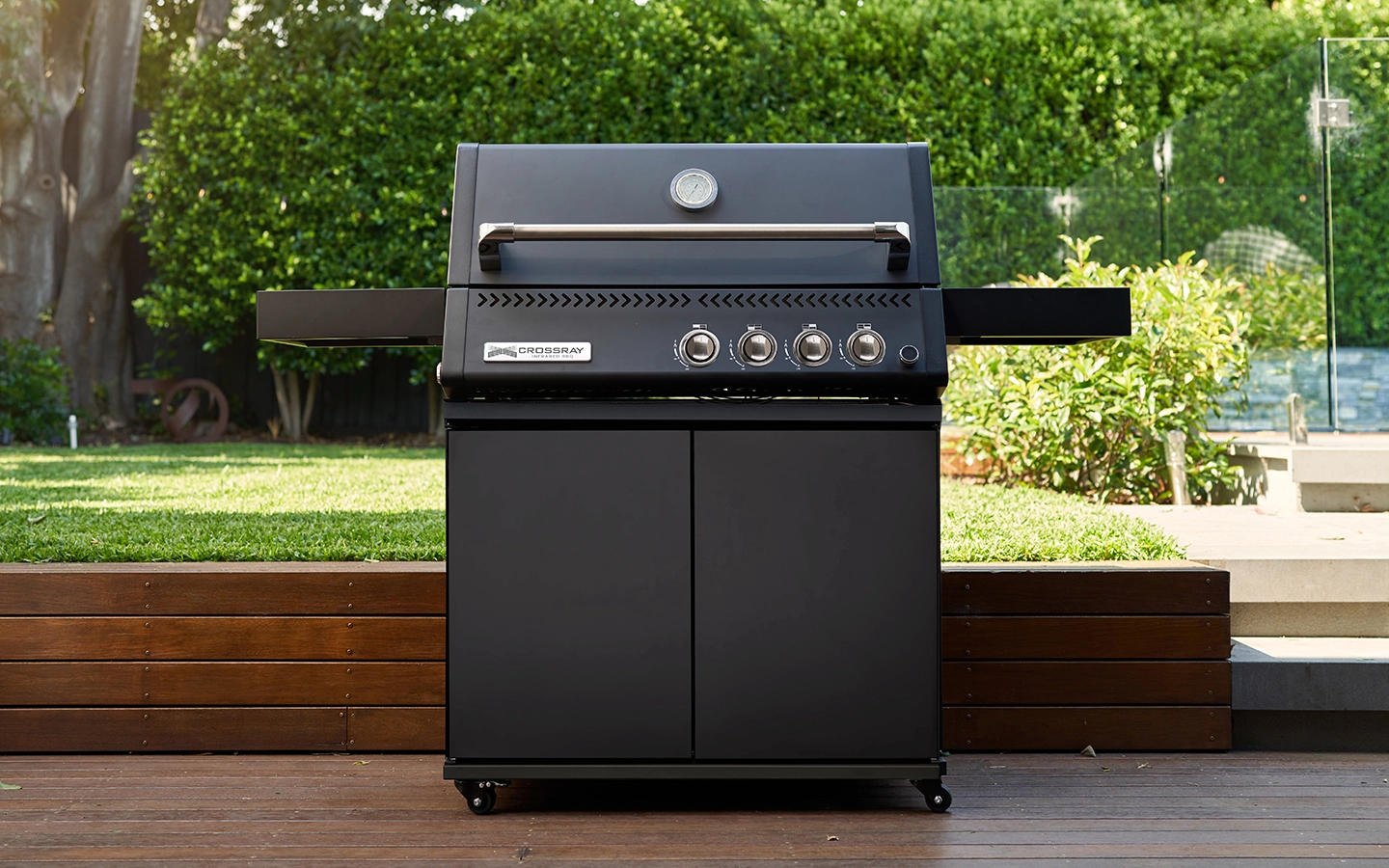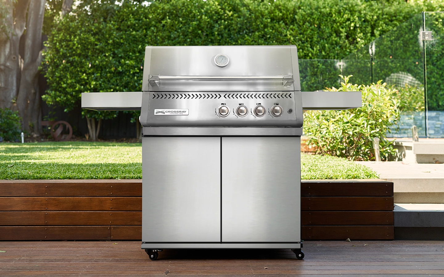 The new CROSSRAY XPlor Gas BBQ with trolley redefines outdoor cooking by combining the intense heat of traditional charcoal with the convenience of gas. Its sleek, contemporary design—available in stainless steel or black—paired with the versatility of a trolley makes it ideal for a wide range of outdoor setting.