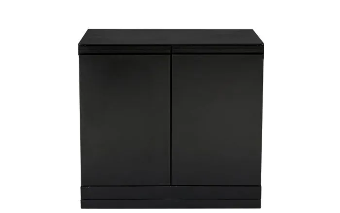 Black zinc coated/powder coated mild steel. Double skin, black zinc coated/powder coated mild steel with magnetic closure doors with a middle shelf for is plenty of storage space for your cooking utensils.