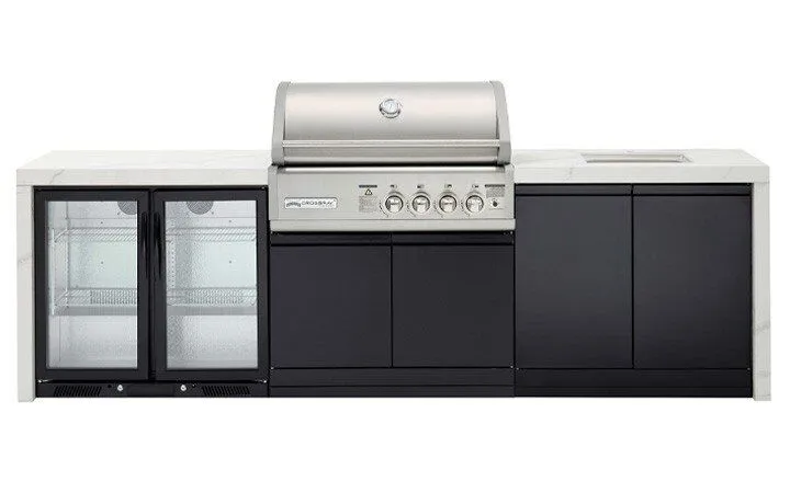 Includes a X-Origin Gas BBQ Inbuilt model TCS4FL with 4 infrared burners (a 4 burner outdoor kitchen model)
