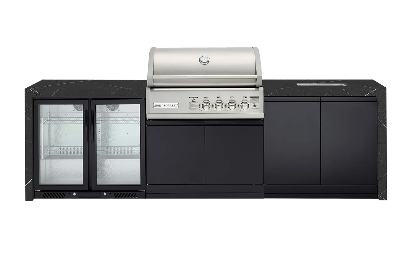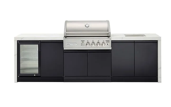 The NEW X-Origin Premium Gas Outdoor Kitchen feature a white or black sintered stone benchtop with waterfalls. Designed to perfectly match the award-winning 4 burner CROSSRAY in-built infrared gas BBQ, it is ideal if you love cooking and entertaining outdoors, in style. With a wide variety of options and inclusions to choose from, you can buy an outdoor kitchen that is perfect for you and your outdoor area.